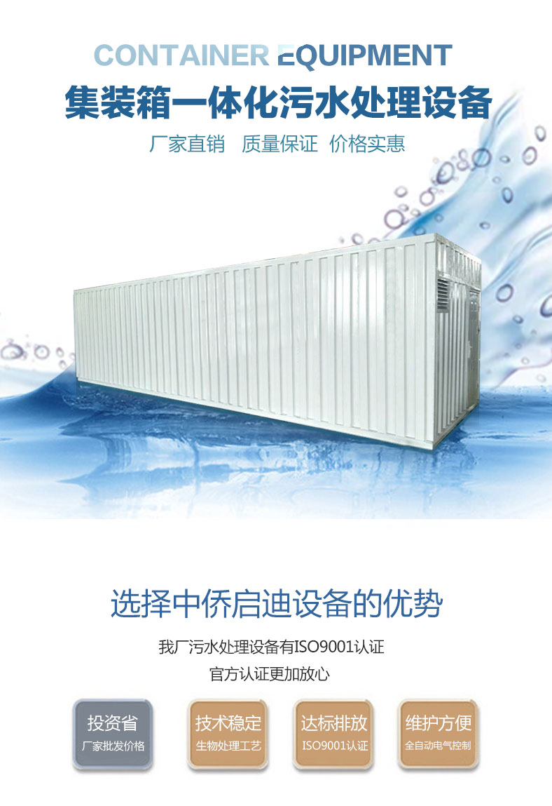 集裝箱一體化污水處理設(shè)備是我公司2018年上半年新出的一款時尚、大氣、處理能力強(qiáng)的專門針對于生活污水類似的污水處理設(shè)備、設(shè)備處理能力為每天污水量5-5000噸、設(shè)備主要應(yīng)用于中小型企事業(yè)單位污水,適用于生活、醫(yī)療、食品工業(yè)、肉類加工、養(yǎng)殖、洗滌、制革等生活和工業(yè)廢水的處理。經(jīng)我公司集裝箱一體化污水處理設(shè)備處理后的水質(zhì)達(dá)到中水回用標(biāo)準(zhǔn)或污水綜合排放標(biāo)準(zhǔn)。